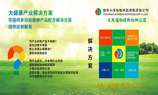西安市小草植物科技有限責任公司成立于2004年,工廠位于西安市周至縣集賢工業(yè)區(qū),辦公室位于西安高新區(qū),一家具有進出口權的技術型民營企業(yè)。